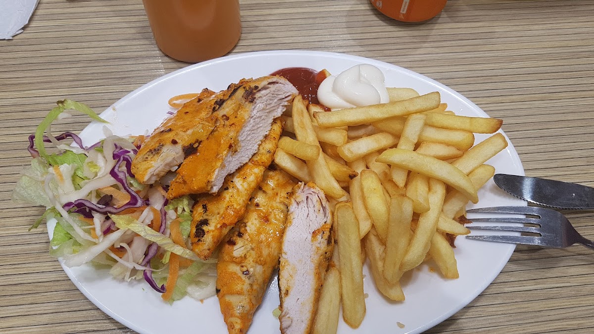 Food is clearly the main focus here, and it shows. The Peri Peri Chicken is a standout and comes in generous portions, whether you go for the 1/4 Peri Peri Chicken or the more filling 1/2 Chicken option. The chicken is bold, juicy, and full of that signature Portuguese-style seasoning that keeps people coming back. Pairing it with Chicken Stripe Fries Fresh Health Food M adds a crispy contrast that works surprisingly well and keeps the meal feeling balanced rather than heavy.